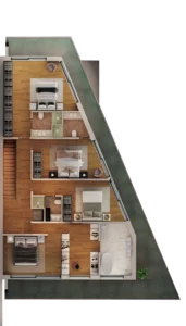 Cada fração, compostas por quatro suítes, foi projetada com a máxima atenção aos detalhes, acabamentos de alta qualidade e espaços amplos e luminosos. O “Praia Mar Residence” também oferece um jardim e uma piscina exclusiva a cada fração, onde os moradores podem relaxar e desfrutar do sol.